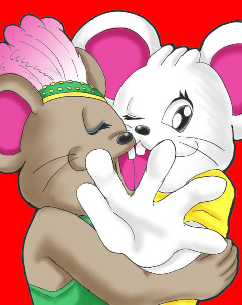カップル絵です(笑)愛すべき鷲羽山ハイランドマスコット・チューピー君に 彼女ができ、その名前も「チューリー」ちゃんに決定。そのお祝いも兼ねて イチャイチャイラストを描いてみました。チューリーちゃん初描きです(笑) 夏なのに暑苦しいばかりにラブラブな二匹でした。 子孫はねずみ算式に増えてゆく…