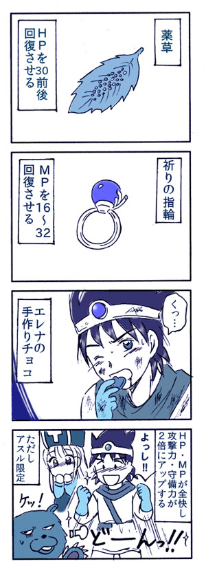 2012年・バレンタイン勇僧マンガ 勇者→アスル・僧侶→エレナです。 グリズリーもノロケ(?)に付き合ってられないようです(笑) 勇僧なのに僧侶ちゃんの出番が少ないのは気にしてはいけません。