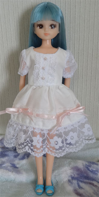 りんなさんが出展したドールイベント用に作られたという白いワンピースです。