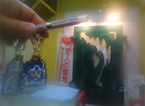 一緒に連れて行ったキーホルダー版のナノビーズ勇僧で撮りました。