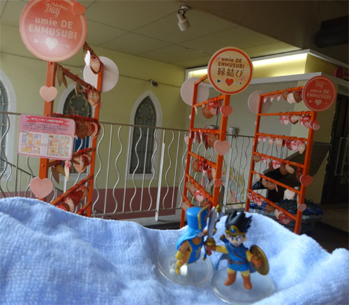 バレンタインシーズンだったので、縁結びの絵馬に願いをかけるコーナーがありました。