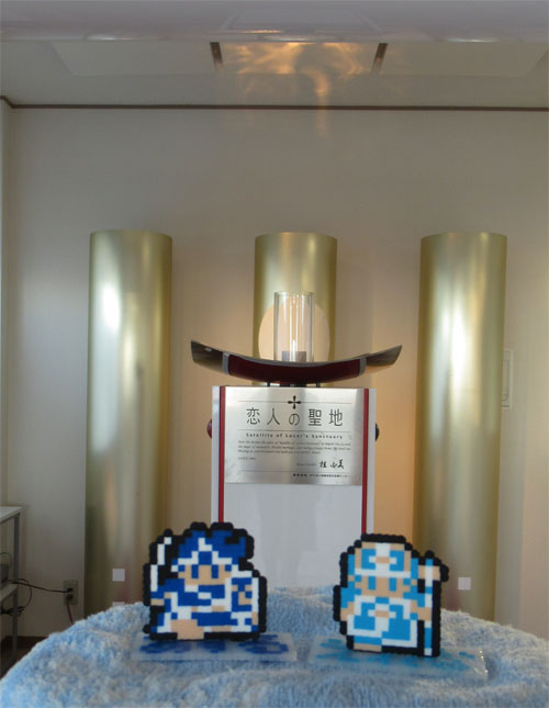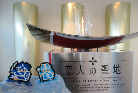 モニュメントの両サイドのボタンを同時に押すと火がともります。