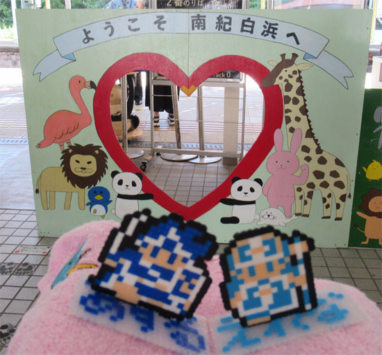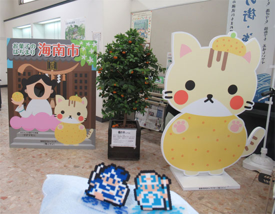 駅にいた、海南市のキャラクター「海ニャン」(かいにゃん)