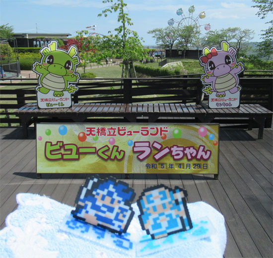 ここのマスコットキャラの「ビューくん」「ランちゃん」と記念撮影!