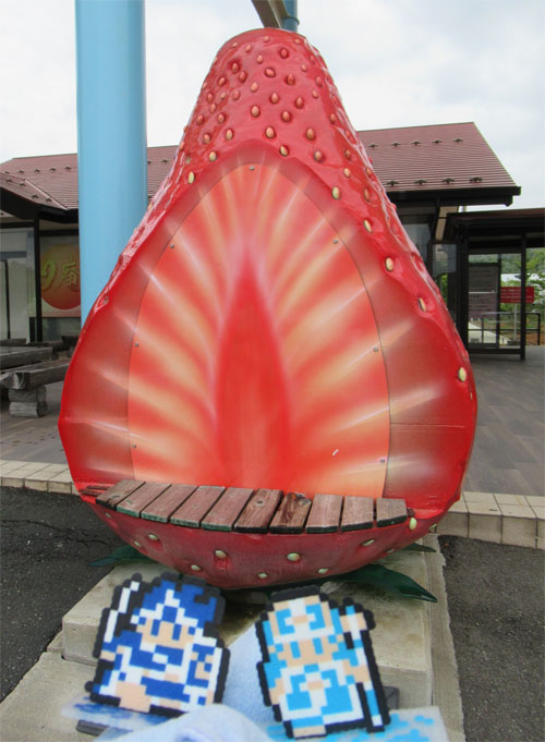 立ち寄った店にあった巨大なイチゴ型のベンチ!リアルです。