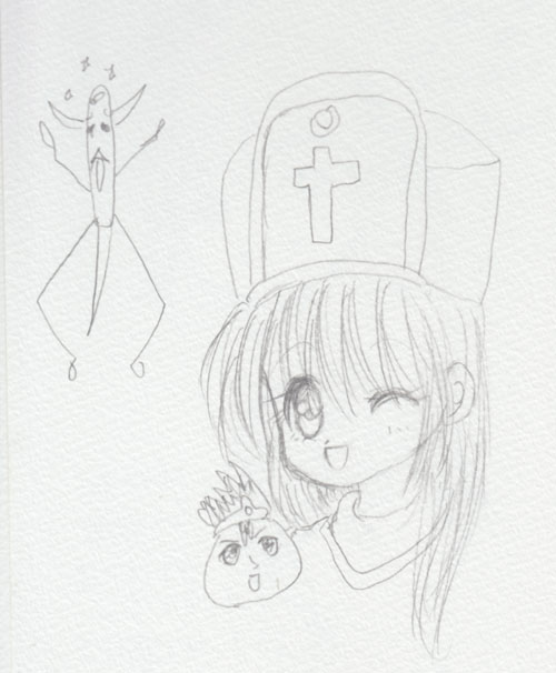 見守ってもらっていたので、絵にもスライムをくわえてみました♪