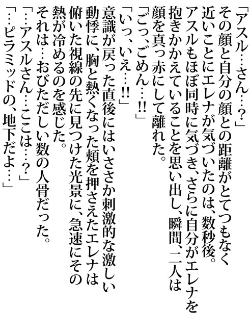 ピラミッドの地下に二人で落ちてしまったアスルとエレナの話です。