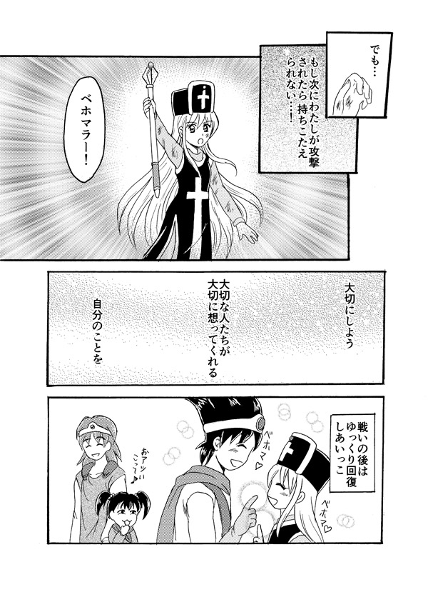 最後まで読んでくださってありがとうございます! エレナは割と自己犠牲もいとわないところがありますが、仲間との 交流の中で、自分も大切にできるようになっていってもらいたいですね。 ドラクエ3,33周年おめでとうございます! 令和3年に33周年、3づくしでめでたさ倍増ですね♪