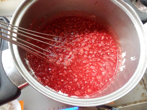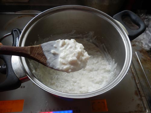 60℃まで加熱します。60℃以上になると段々固まってきて、80℃までいくと