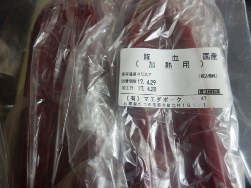 ないとブータンノワールとは呼べないこの豚の血です。近所の肉屋では頼んでも売って