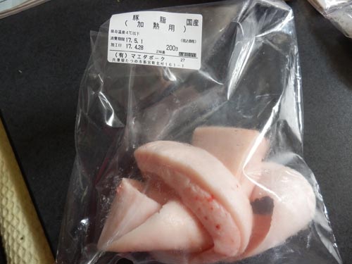 豚の脂です。これも普通の肉屋にはなかなか売ってるものではないみたいですね。