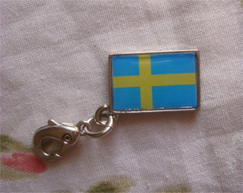 ファスナーホルダー編 国旗柄ファスナーホルダーという商品です。大きさは直径2センチほどの小さい ものです。まあ・・・普通にスウェーデン国旗なわけですが・・・ クリスの出身地故に、ただのスウェーデン国旗柄もクリスグッズとなり得るのです(笑)