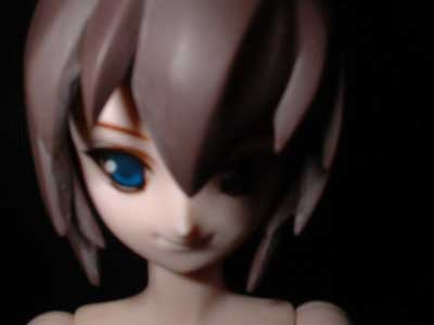 顔のアップです。このシリーズの頭は目が描かれておらず、目の部分に穴が