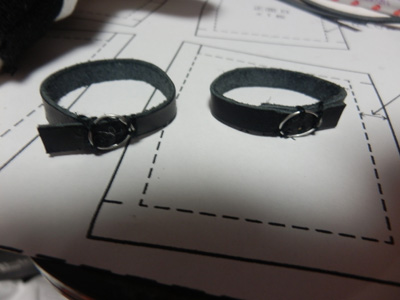 ズボンについてるベルトを作りました。革のはぎれをまるめて、ステンレスの