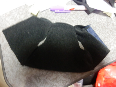 袖をなくして襟元をハイネックになるように調整。後ろはマジックテープで着脱