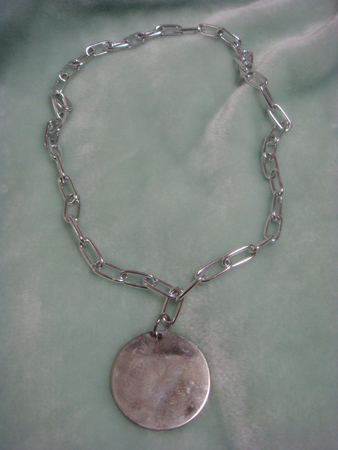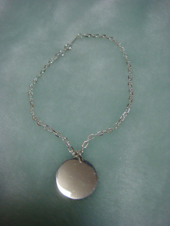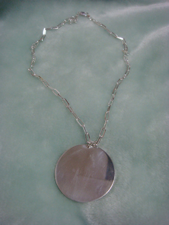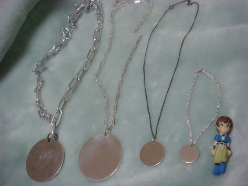合わせてみて、ちょうど良い大きさにしてもらいました!円盤の大きさは2センチで、チェーンの