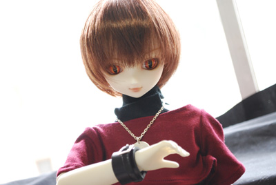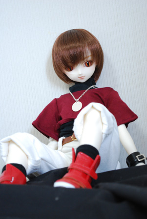 壁にもたれる感じで。ああぁ・・・服の色がかなり良い感じ赤黒さ・・・