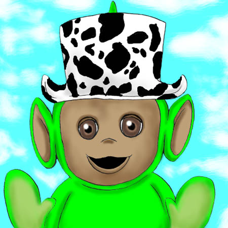 キリ番のニアピンを取って下さった、大観覧車さんのリクエストで描きました テレタビーズの「ディプシー」です。ディプシーお気に入りの帽子もかぶっています。 この帽子は上が空洞になっていて「それ帽子違う!」とツッコミたくなるシロモノ なんですが、テレタビーズの世界にはいかなるツッコミも通じないのです(笑)