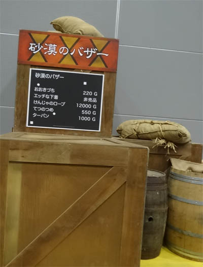 広い会場のあちこちに、様々な建物やアイテムやモンスターなどが並び、