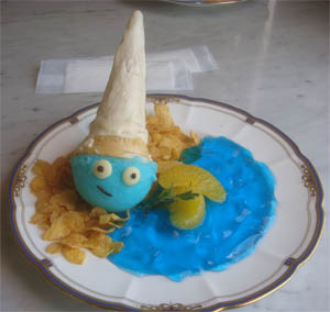 クリアブルーなゼリーは綺麗ですが、食品としてはちょっと引いてしまうカラーです(爆)