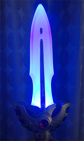 光るロトの剣!青白い光を放ち、振り回すと攻撃時の効果音も鳴ります。
