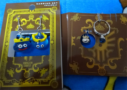 スライムのイヤリングと、ペンダント。スライムは一見キングスライムのようですが、頭にUSJの入り口を模した