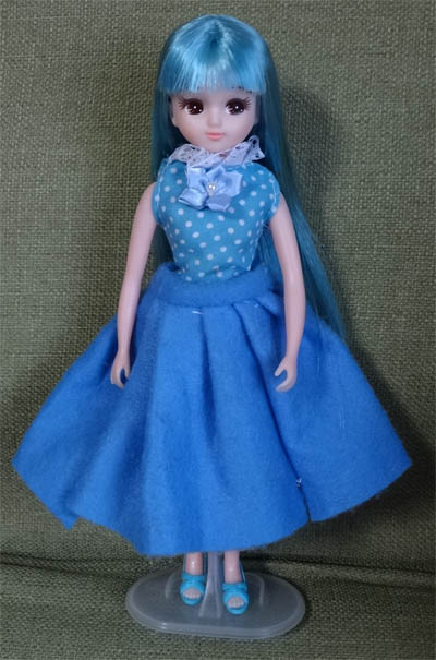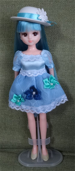 この水色のドレスは、以前作ってくださった白ドレスの色違いバージョンとのこと。