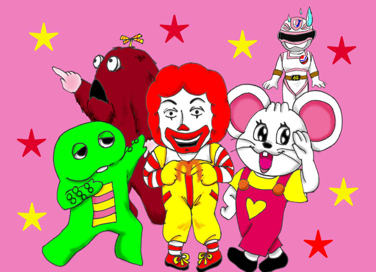 29万ヒットを踏んで下さったA田さんのリクエストは 「ドナ&ガチャムク&チューピー&さやかさん(チェン ジ マン)」 (本当はもう一体いたんですが、事情によりこの絵では削除しています) そんなむちゃくちゃな組み合わせでどんな絵を描けというんだと悩みましたが、 さやかさんがいるので、戦隊をイメージしたポーズ(なのか?)をとっていただきました。 イロモノたちはノリノリ、さやかさん(変身後にしました)はドン引きです(笑)