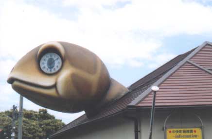 ちなみに駅の入り口にはカメのブロンズ(?)像があり、