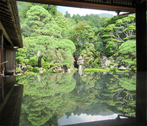 ピカピカのテーブルに庭の景色を映して「リフレクション撮影」なるものができると