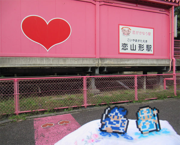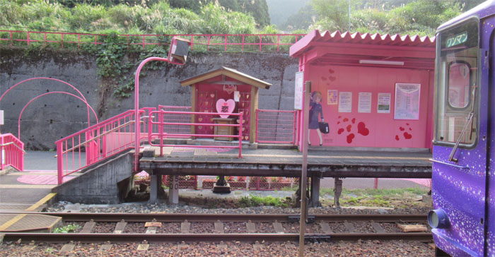 以前、テレビで見て知ったのですが、ピンクに染まったハートだらけの駅を見て