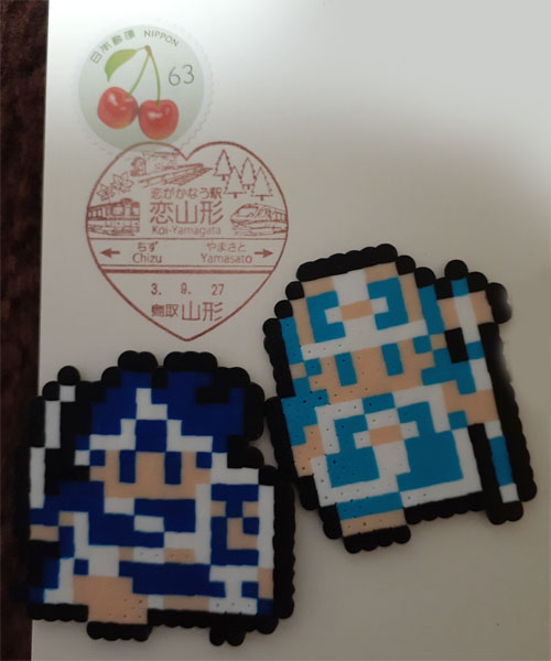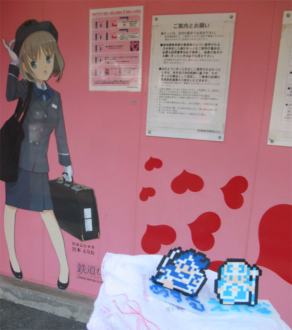 リバーシブルで、裏面はハート型の駅看板を再現していました。