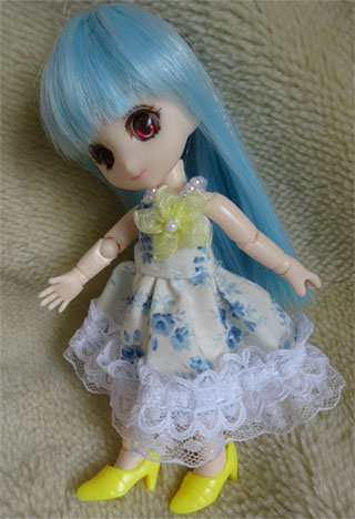 まずは水色を履いてもらいました。髪とおそろいなのでよく似合いますv