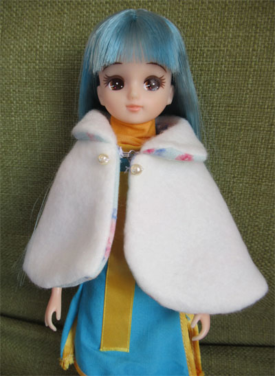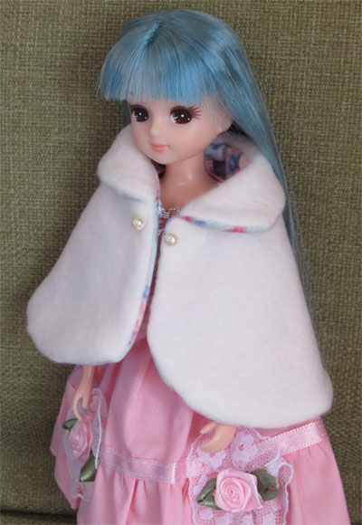 こちらは温かそうなケープ。表はシンプルな白ですが、裏地は花柄で、