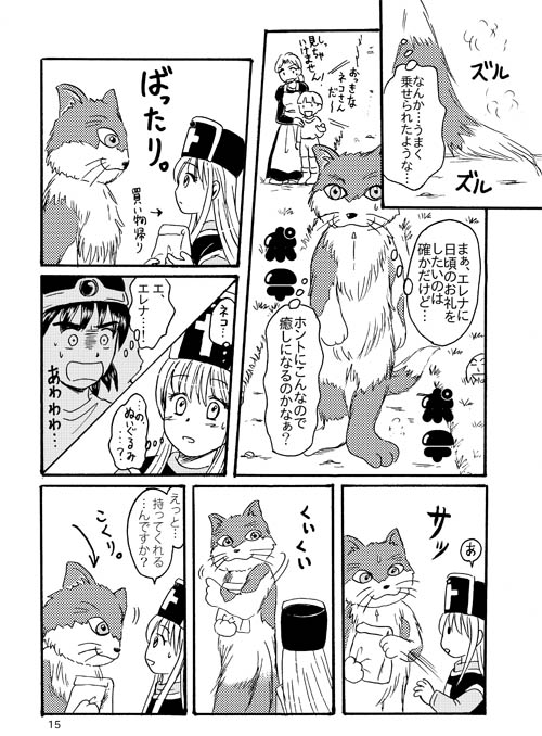 うめ吉のマンガより。勇者アスルが「ぬいぐるみ」を着て僧侶エレナと交流する(!?)話です(何)