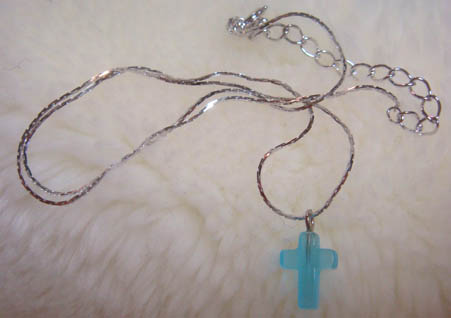 水色の石をあしらった十字架!やはりこういうものを