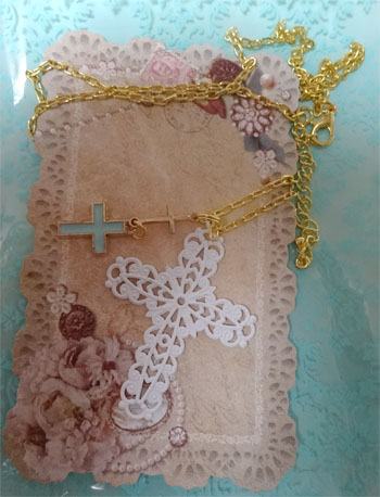 下さったのだとか…感激vv 金色の鎖と小さな十字架、水色の十字架という取り合わせ