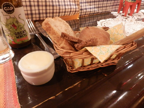 しばらく待っているとパンが出て来ました。おかわり自由でした!左の白いのはバターです。