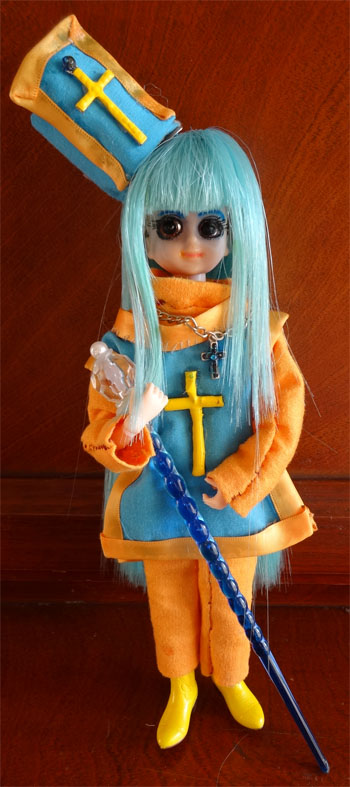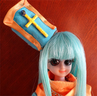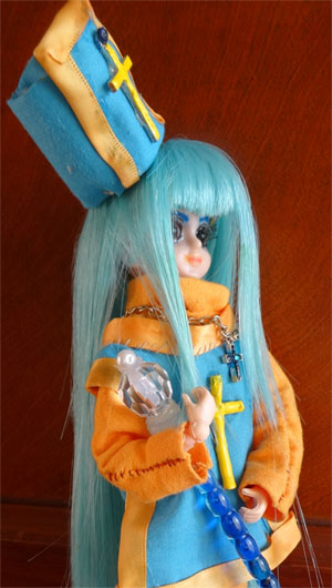 忠実に再現された僧侶服と帽子(十字架部分が立体というのも素敵です!)は手作り。