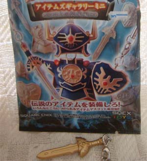 ミニサイズのストラップになったものです。剣・盾・鎧・兜にそれぞれフル彩色版、