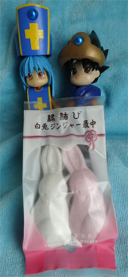鳥取で買った、可愛い白とピンクの兎型モナカと共に。