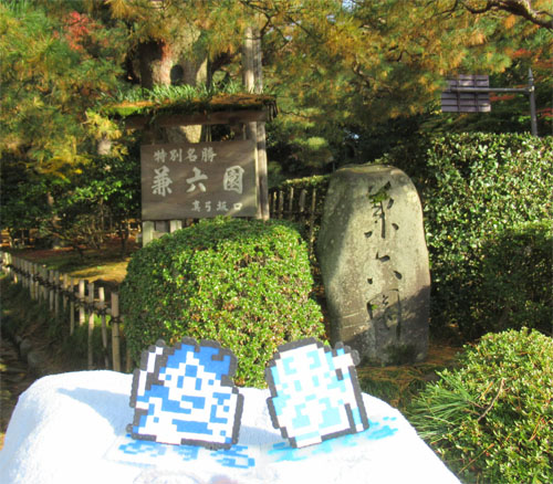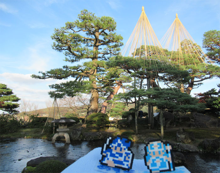 雪から木を守る「雪吊り」のための縄に石の灯籠と、兼六園らしい勇僧ショットが撮れたので大きめに載せておきます。
