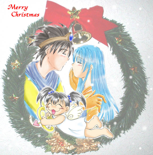 ちなみにクリスマスリースはデジカメで撮った写真を使っております。この絵のために買って来ました、ダ●ソーで(爆)