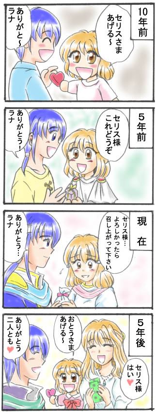描き分けの為に5年後セリス様の髪を切り、ラナの髪を
