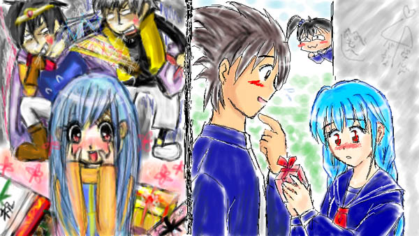 流れでバレンタインネタを描くことになりました〜左がパンコロさん、右がうめ吉です。