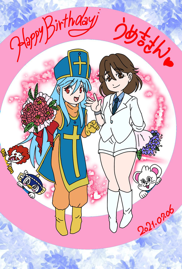 美しいさやかさんから花束をもらえて浮かれまくっている姿をドナ様とチューピー君と