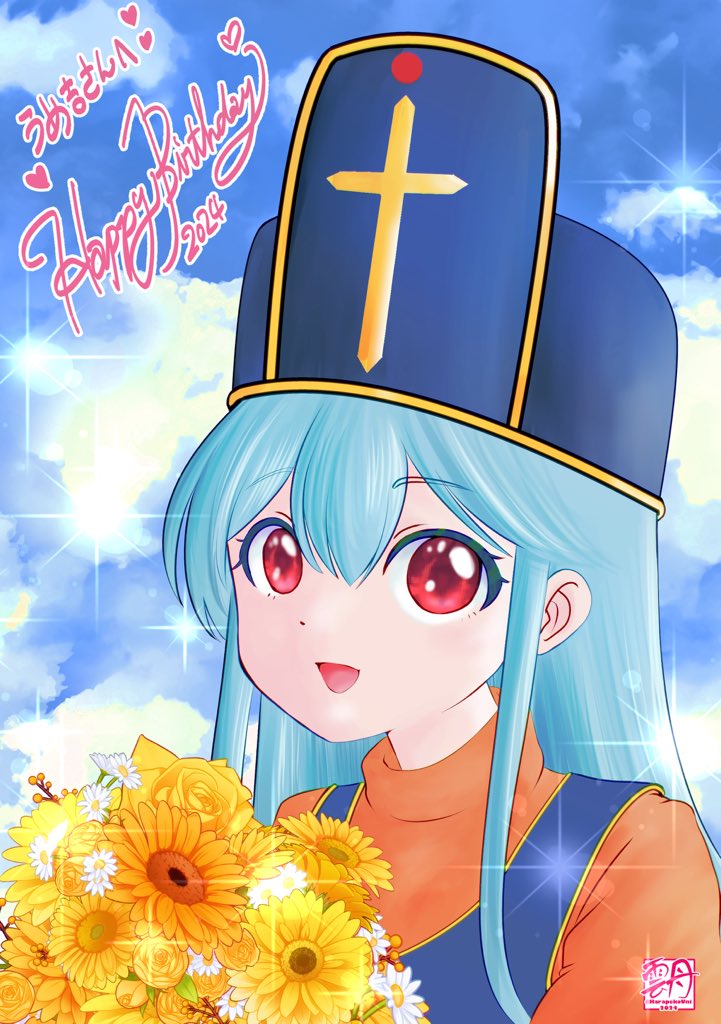 ★美しい花束を持って、うめ姉の誕生日を祝っている感じが