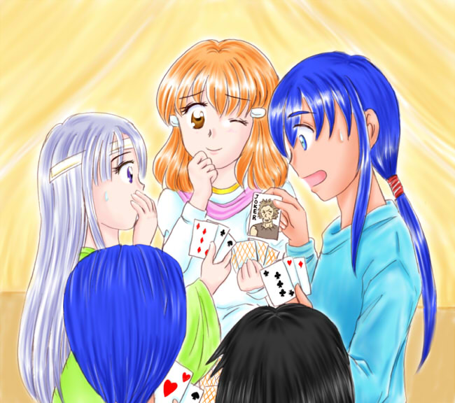 やってるのはババ抜きです。セリス様がユリアから引いた札はババ! ラナはセリス様の分かりやすい反応からそれを察して思わず苦笑… といったシーンのつもりです。後ろ姿はレスター&ラクチェです。