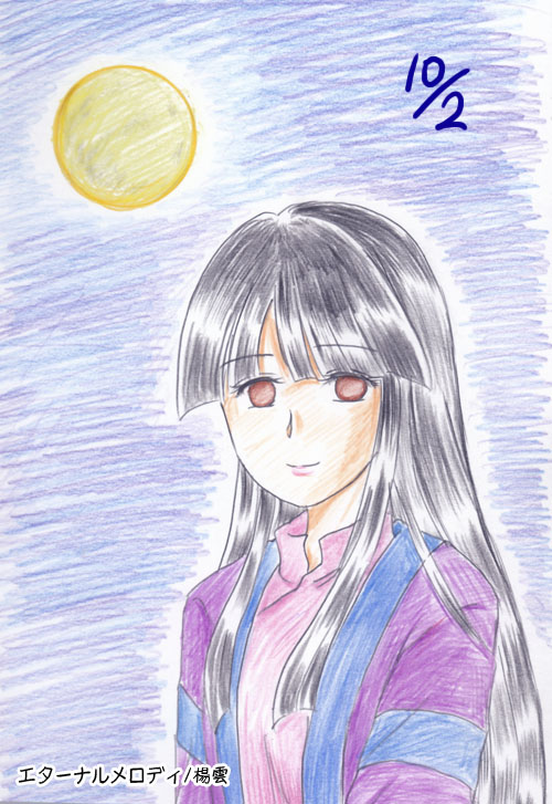 「エターナルメロディ」集(2) 2012年2月9日、楊雲誕生日に日記に載せた絵です。 ちょうど雪が降ったので、ゆきだるまと楊雲にしてみました。 楊雲の誕生日って雪が降る事が多い気がします。 2020年10月の1か月間、毎日絵を描くチャレンジをしてました。 2日に描いたのは楊雲。中秋の名月が綺麗だったので、 好きなキャラの中で月が似合うと個人的に思っている楊雲にしました。 前へ ・ 戻る