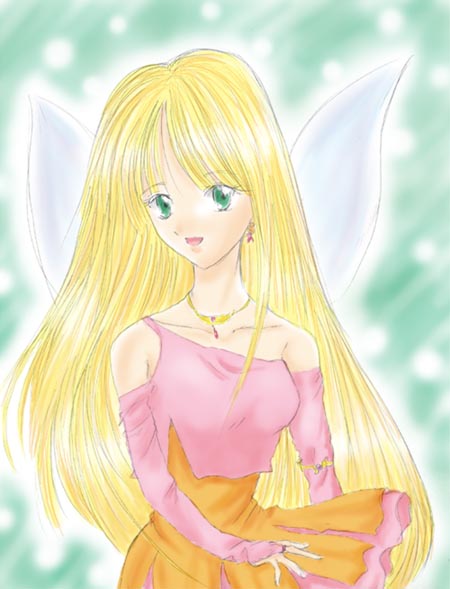 妖精エティ (原画→りんなさん 着色→うめ吉) 恐れ多くも、彩川りんなさんの原画にわたしが着色させていただいたものです。 りんなさんのオリジナルキャラのエティさん。清楚で可憐なイメージで塗りました。 しかし、背景が単純だ…(汗)いやしかし、他の人の絵を塗るのってなんだか楽しいなぁー♪ 戻る